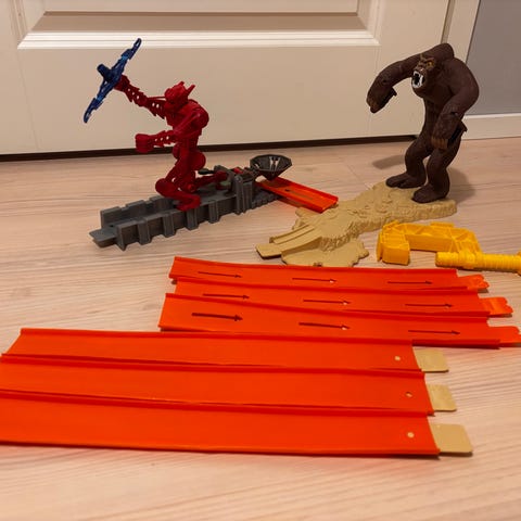 Hot Wheels Stunt lasten leikkisetti sisältää radan ja auton, jotka on suunniteltu lapsille leikkeihin. Pakkaus sisältää radan osat ja auton, jotka ovat yhteensopivia muiden Hot Wheels -tuotteiden kanssa.
