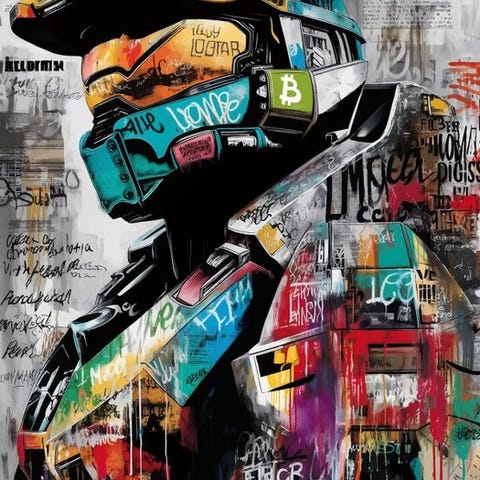 ◉ Keskitaso: Alkuperäiset mustekynätyyliset teokset, käsinmaalattu spray-maalilla ja pastellivärikynillä.
