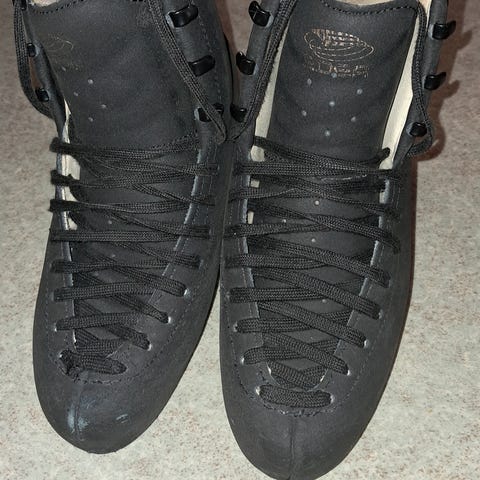 Myyntiin tytölle pieneksi jääneet Edea Chorus -taitoluistimet, koko 245, terä gold seal. Meillä olleet kilpa- ja hallikäytössä. Teipeistä huolimatta kengissä runsaasti jälkiä. Terien teroitusvara näkyy kuvista. Aina ammattilaisella teroitetut. Ainakin ulkojäille vielä loistavat luistimet.
