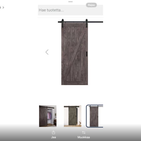 Myydään kattokiskoilla liukuva lasinen liukuovi 150€. Kattokiskoon kuuluu myös peitelevy. Korkeudessa pikkusen säätövaraa (1-2 cm). Vain nouto.