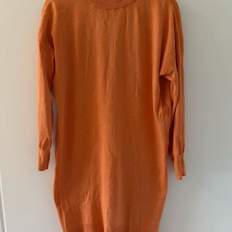 Lyhythihainen ruskea neulemekko suloisella rusetilla. Olkapäästä helmaan 102 cm ja kai- kai 43 cm