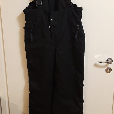 Naisten mustat uudet Etirel lasketteluhousut. Koko 38. Leveys lantion kohdalla 51 cm, pituus haarasta 80 cm. Lumilukot lahkeissa.