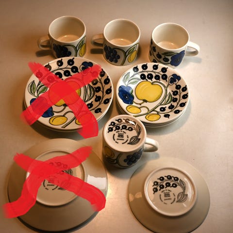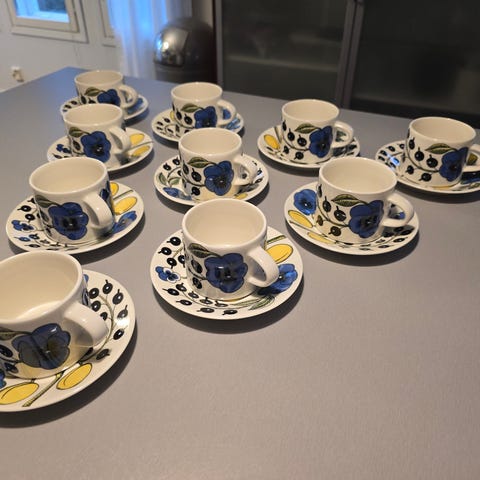 Paratiisi kuppi ja lautanen. Kunto: hyvä.Pohjasta n.1-2 mm muru pois. Kts. kuva.