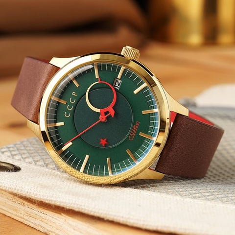 Ainutlaatuinen kello CCCP-brändiltä. Tunnettu liikkeistään vuodesta 1924 lähtien, he ammentavat inspiraationsa Neuvostoajasta, ikonisen ajan kellonteossa. Nykyään yritystä ei enää omista venäläiset.