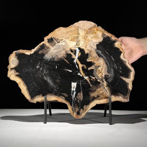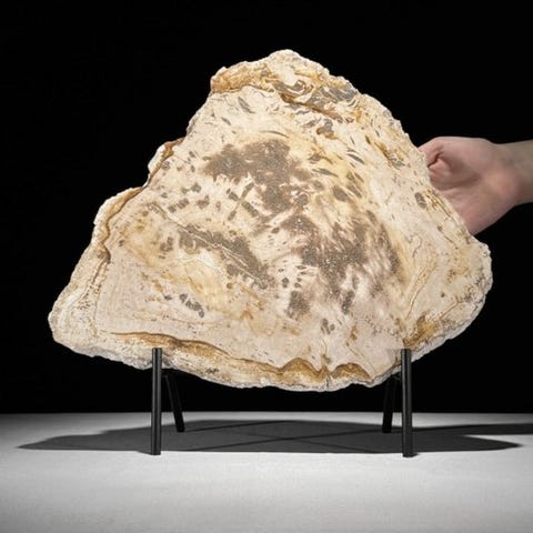 Upea kivettyneen puun viipale räätälöidyllä jalustalla.
