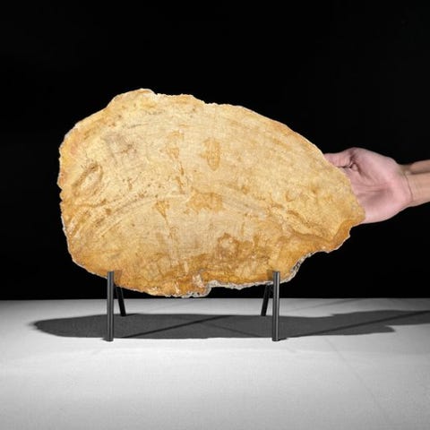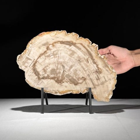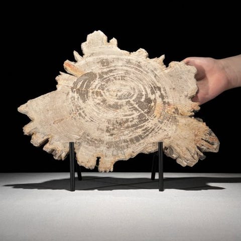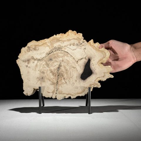 Upea kivettyneen puun viipale räätälöidyllä jalustalla.