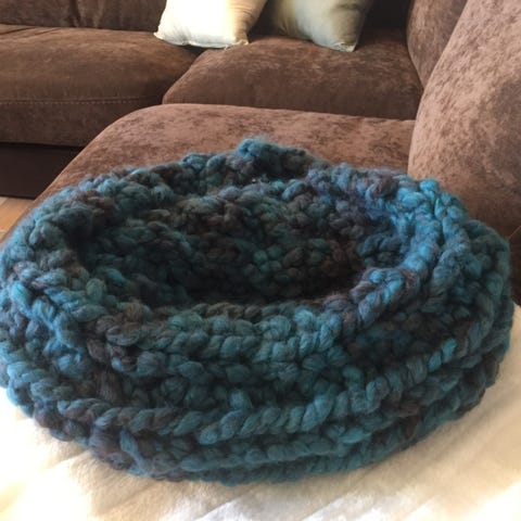 Vaaleansinisenharmaa hyväkuntoinen villahuivi.