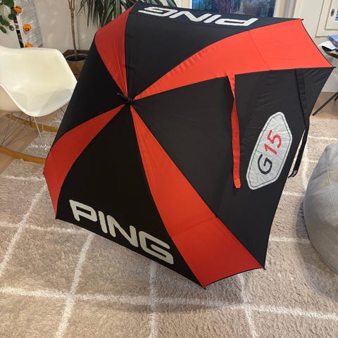 Myydään vain muutaman kerran käytetty Stadiumin sateenvarjo golfiin.