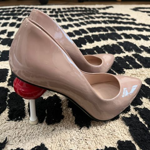 Kahdesti käytetyt, lähinnä istuen jalassa pidetyt Minna Parikan tikkarikorkokengät kokoa 39. Pohjassa näkyy, että käytetty, muuten uudenveroiset. Alkuperäinen laatikko. Sovitus onnistuu tarvittaessa myös Itäkeskuksessa.