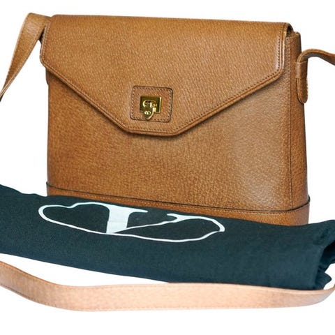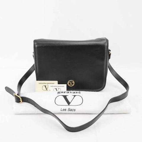 Elegantti ja ajaton olkalaukku Valentino Garavani -merkkiseltä, valmistettu korkealaatuisesta mustasta grained-nahasta. Suunnittelussa on rakenteellinen siluetti, klassinen läppäkiinnitys, hienovaraisesti kohokuvioitu Valentino 'V' -logo etuosassa ja hienostunut kultaisenvärinen rautatarvike, joka lisää ripauksen luksusta.