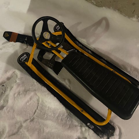 Stiga Snowracer lasten rattikelkka. Hyvä kuntoinen. Vaihdettu race sininen ohjaustanko. Nouto nättinummesta.