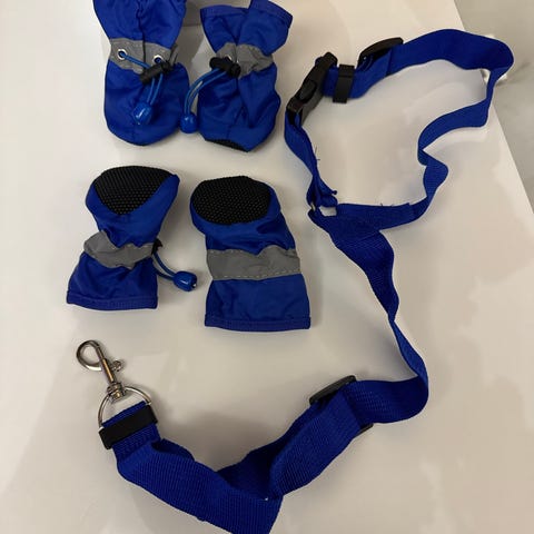 Set of dog boots (4 pieces) and a puppy diaper, suitable for a large breed puppy.