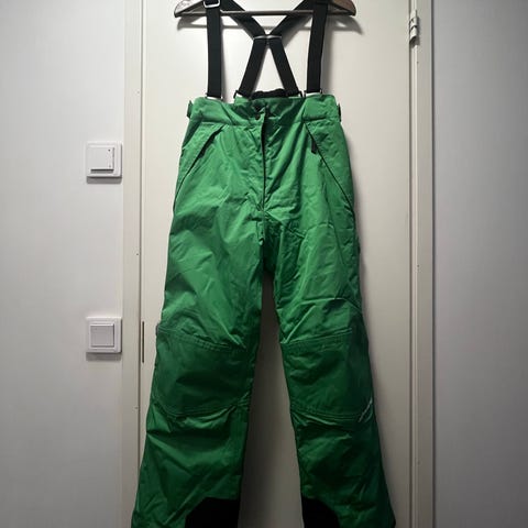 Hyväkuntoiset mustat Everest lasketteluhousut. Täysin ehjät, ei kulumaa. Vyötäröllä tarralla säätö, lahkeessa nepparilla säätö ja lumilukko. Sisäpuolella takamuksen kohdalla fleece vuori, menee kovemmillakin pakkasilla. Nouto Kempeleestä.