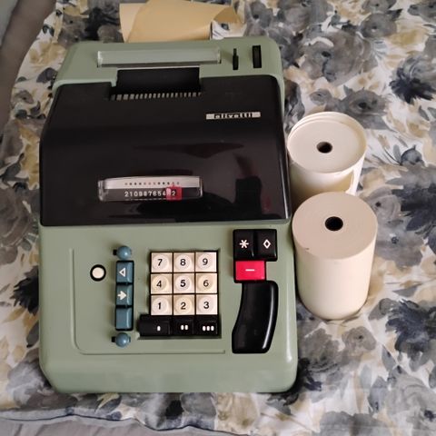 Precisa mekaaninen laskukone siniharmaalla värillä. Laitteessa on numeronäppäimistö ja paperirulla tulostusta varten. Sopii mekaaniseen laskentaan ja peruslaskutoimituksiin.