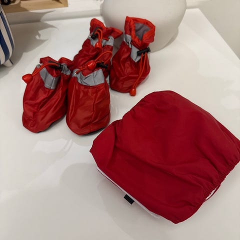 Boots protect paws, and the seat belt clip keeps your dog safe during car rides.