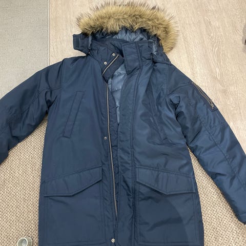 Myydään hyväkuntoinen, tummansininen toppatakki. Taskun yläosa revennyt, mutta parsittu tummansinisellä langalla (näkyy kolmannessa kuvassa). Nouto Likolammen alueelta Päijät-Hämeen keskussairaalan läheltä.