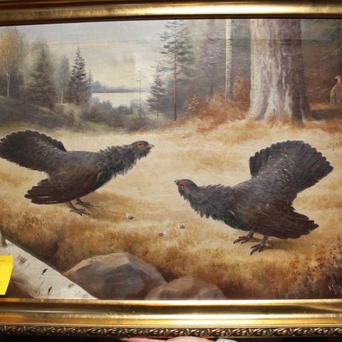 Taulu, Metsästyskoirat N.Silfverberg?, koko 38x 56 cm