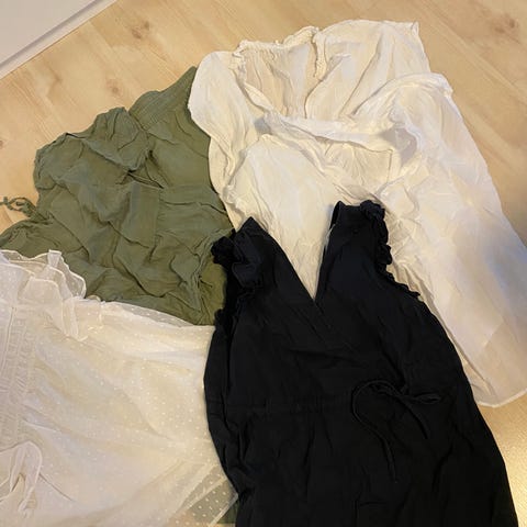 Kasvava vaatepaketti kokoa 38-40. Yleisilmeeltään siistejä vaatteita, toisia käytetty enemmän, toisia vähemmän.