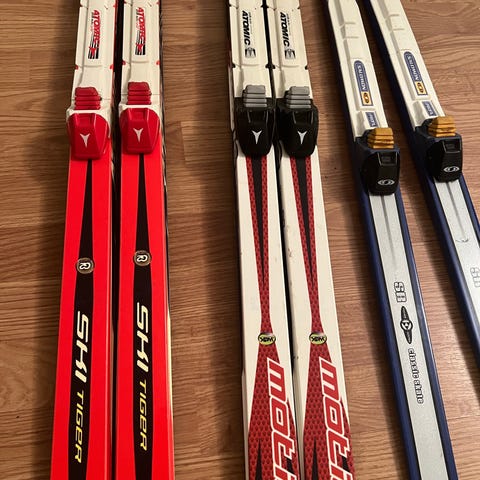 Varastojen kätköistä hyväkuntoiset laskettelusuksiukset plus sauvat plus monot