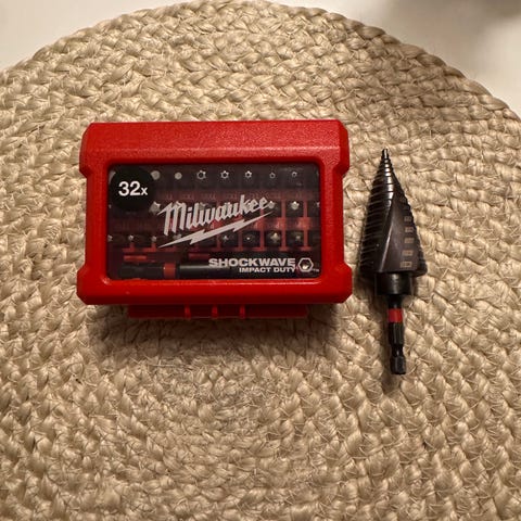 Hylsyt 4mm - 13mm ja 1/4 vääntiöllä sekä ruuvauskärjet. Paria kokoa käytetty parikertaa, mutta uuden veroiset.