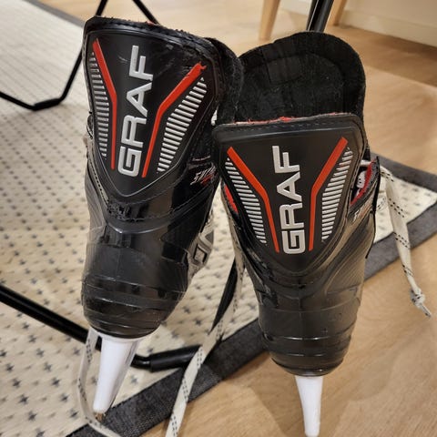 Käytön jälkiä löytyy, mutta hyvin näillä vielä lapsi pystyy luistelemaan.