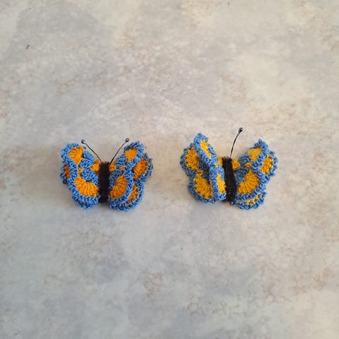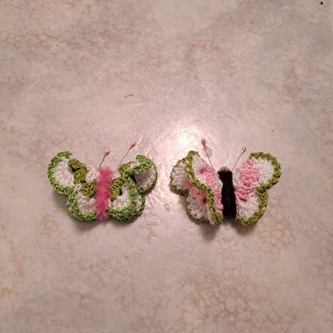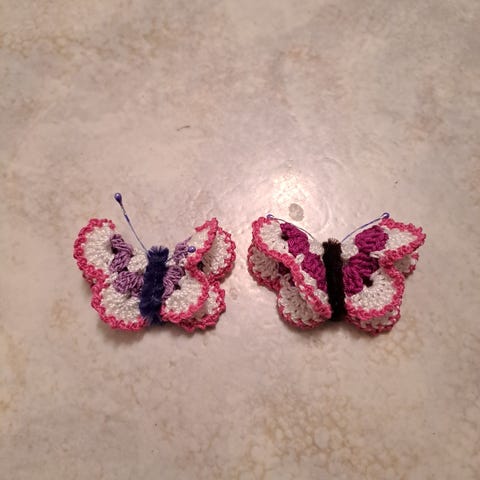 2kpl Uusia virkattuja perhonen/perhos magneetteja.