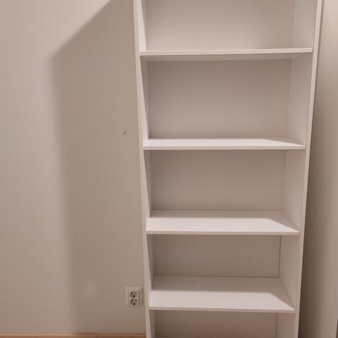 Jyskin valkoinen kirjahylly vuodelta 2019.