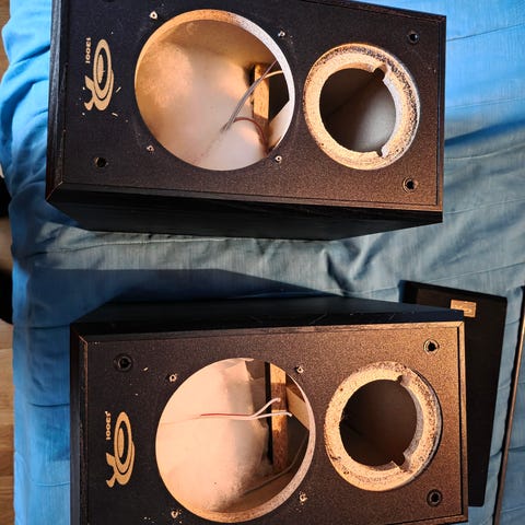 Kotelot kohtalaisessa kunnossa diskantit toimii keskiääni elementit kalvo rikki mutta toimii halutessaan saa mukaan