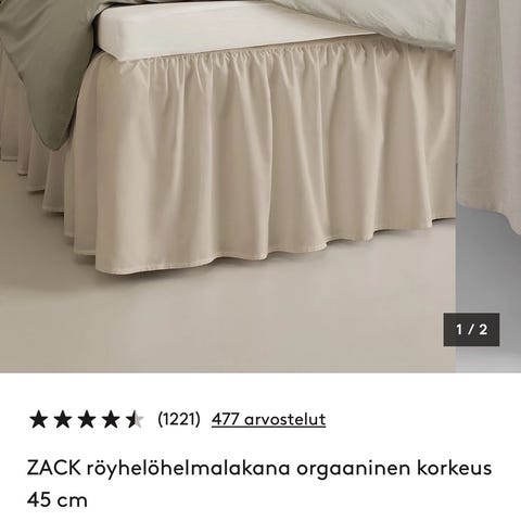 Jyskin valkoinen helmalakana 120x200, korkeus 45cm. Käytetty vain vähänaikaa, jäi tarpeettomaksi uuden leveämmän sängyn takia. Kuin uusi, säilytyksestä ryppyinen.