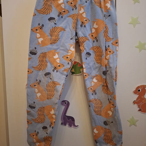Ehjät lasten vaaleanpunaiset raidalliset housut. Lahkeessa muutama tussin jälki. Koko: 4-6 vuotiaalle.