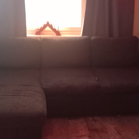 Annetaan vuodesohva, muuten kunto ok mutta takaa suojakangas hajoaa. Ei näy, jos sijoittaa seinän viereen eikä haittaa käyttöä. Levitettynä noin 110-120cm.