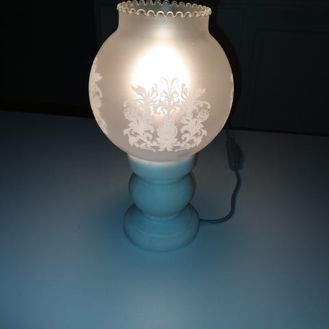 Vintage alabasterijalkainen valaisin. Varjostin puuttuu. Maadoittamaton pistoke. Korkeus 31 cm.