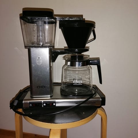 Moccamaster kahvinkeitin , moitteettomassa kunnossa ja puhdistettu säännölisesti.