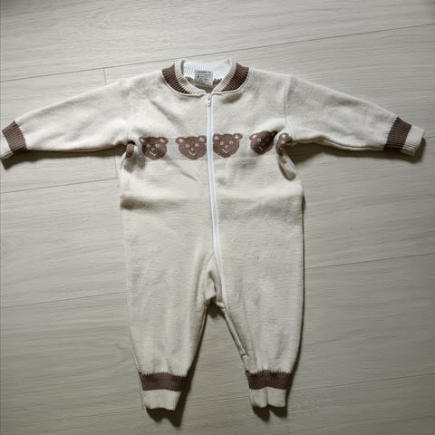 Lämmin villahaalari. Käsien ja jalkojen päälle taitettavat hihan- ja lahkeensuut. Pesty hajusteettomalla pesuaineella. Savuton ja eläimetön talous.