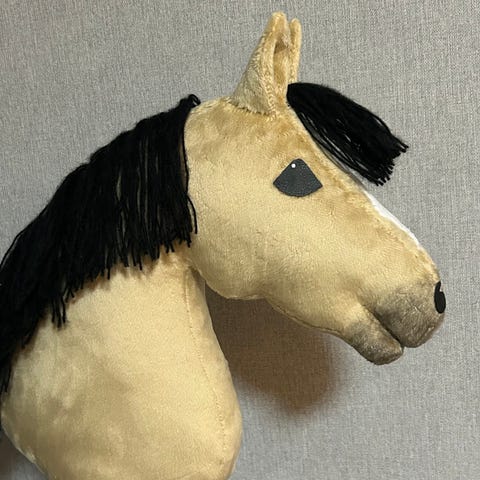Myynnissä uusi, velboakankaasta valmistettu keppihevonen. Heppa on vähän yli A4-kokoinen. Myydään täytteillä mutta ilman keppiä. Kepparin mukaan on mahdollista tilata varusteita lisähinnasta, esim. suitset tai riimu. Postikulut lisätään hintaan.