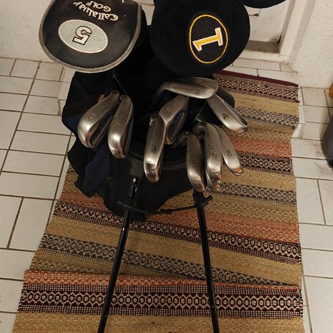 Myynnissä hyväkuntoisia ja laadukkaita Callawayn draiveri ja puumailat, TaylorMade CGB Max R7 -rautamailat sekä Callaway Big Bertha -golfbägi. Erinomainen kokonaisuus niin aloittelijalle kuin jo hieman kokeneemmallekin pelaajalle. Ainoa miinus että rauta 8 puuttuu.