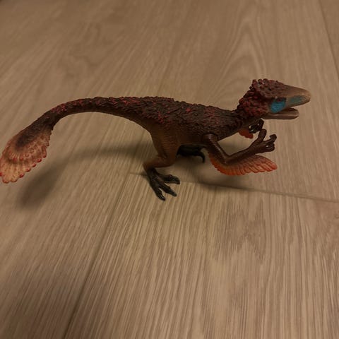 Leikitty dino, käytönjälki maltillista, näkyy kuvissa. Ehjä.