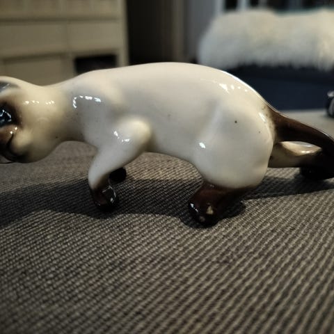 Muuten kiiltävä pinta, pieniä käytönjälkiä (naarmuja/patinaa), jotka kuuluu aitoon vintageen.