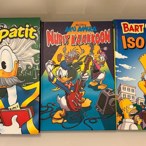 1) Aku Ankka, Made in Finland. 2018. 120 sivua. Juhlavuonna 2011 koottu kokoelma suomalaiskirjoittajien käsikirjoittamia tarinoita (mm. Johanna Sinisalo, J. karjalainen, Mauri Kunnas, Jari Tervo). 19 tarinaa. Hp. erikseen 15€.