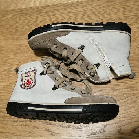 Rieker talvikengät, koko 38, sininen väri. Kengissä on nyöritys ja vetoketju sivulla helpottamassa pukemista. Sisävuori on lämmin ja soveltuu kylmiin olosuhteisiin. Sopivat käytettäväksi talvikaudella.