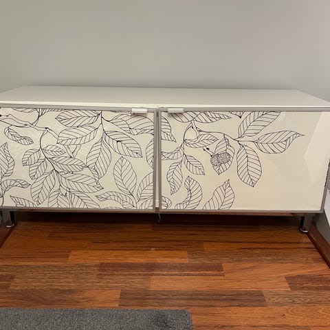 IKEA Bestå kokonaisuus. Todella hyvässä kunnossa, lähes uudenveroinen muuton tieltä pois. Runkojen ja jalkojen väri on valkoinen, ja kaappien ovet ovat vaalean beiget valkoisella marmorikuviolla. Näitä kauniita ovia ei IKEA myy enää.