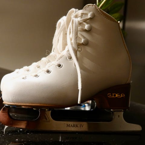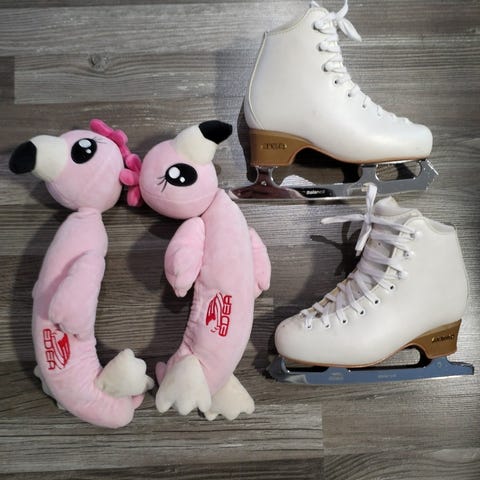 Edean Brio-taitoluistimet Balance-terällä koossa 225, sisämitta on noin 21,7 cm. Luistimissa on pientä kulumaa ja tummentumaa, mutta yleisilme on kuitenkin siisti. Kenkä on edelleen hyvin tukeva ja terässä on teroisvaraa vielä seuraavalle luistelijalle. Luistimet ovat käyneet teroituksessa ammattilaisella Naantalissa.