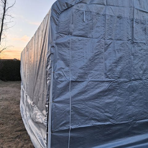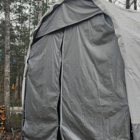 Myydään pressutalli 3 x 6 m korkeus 2,7 m. PVC 500 g/m² - materiaali. Talli paketeissa, kuvat. Pressutallin kuva ohjeellinen, ei ole paketissa olevasta tallista.