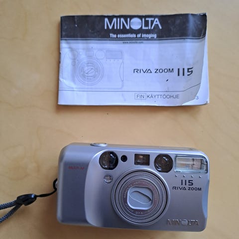 Toimiva 35mm kinofilmi pokkarikamera zoom-objektiivilla.