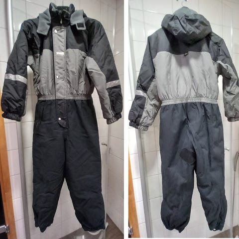 Vähällä käytöllä ollut Travallen SuperRemu toppahaalari. Ei juurikaan karhentumaa kankaassa. Huppu puuttuu.