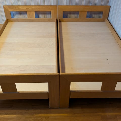 Myydään kaksi kuvan koristeellista sänkyä, toiseen sänkyyn kuuluu ruuvattava sälepohja. Yhteensä hinta 20e