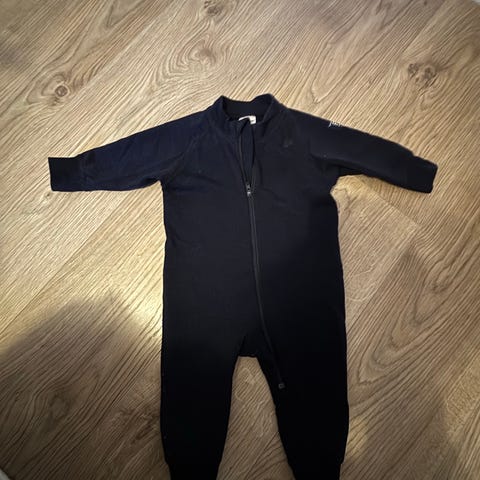 Merinovillapaketti; Polarn O. Pyret unisex lastenhaalari, koko 62-68. sininen väri. Pop pipo 4 -9kk ja hanskat 6 -12kk. Pientä purkautumaa löytyi oikean käden olkavarrelta