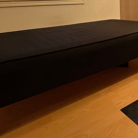 Hyväkuntoinen, siisti tukeva matala sängyn runko sälepohjalla.