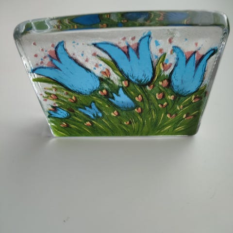 Vintage, Makora Krosnon käsin puhallettu taidelasinen kierretty kynttilänjalka 1970 -luvulta