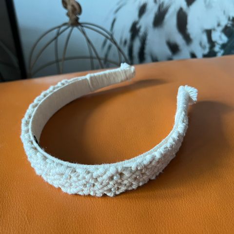 Uusi hiuspanta koristettu sinisellä makrameella. Käsityö.